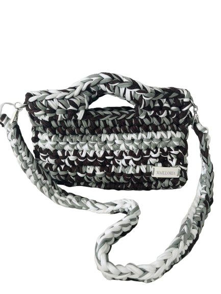 Crochetée à la main avec soin, elle séduit par son mariage de brun profond et de vert olive, évoquant douceur et élégance naturelle.