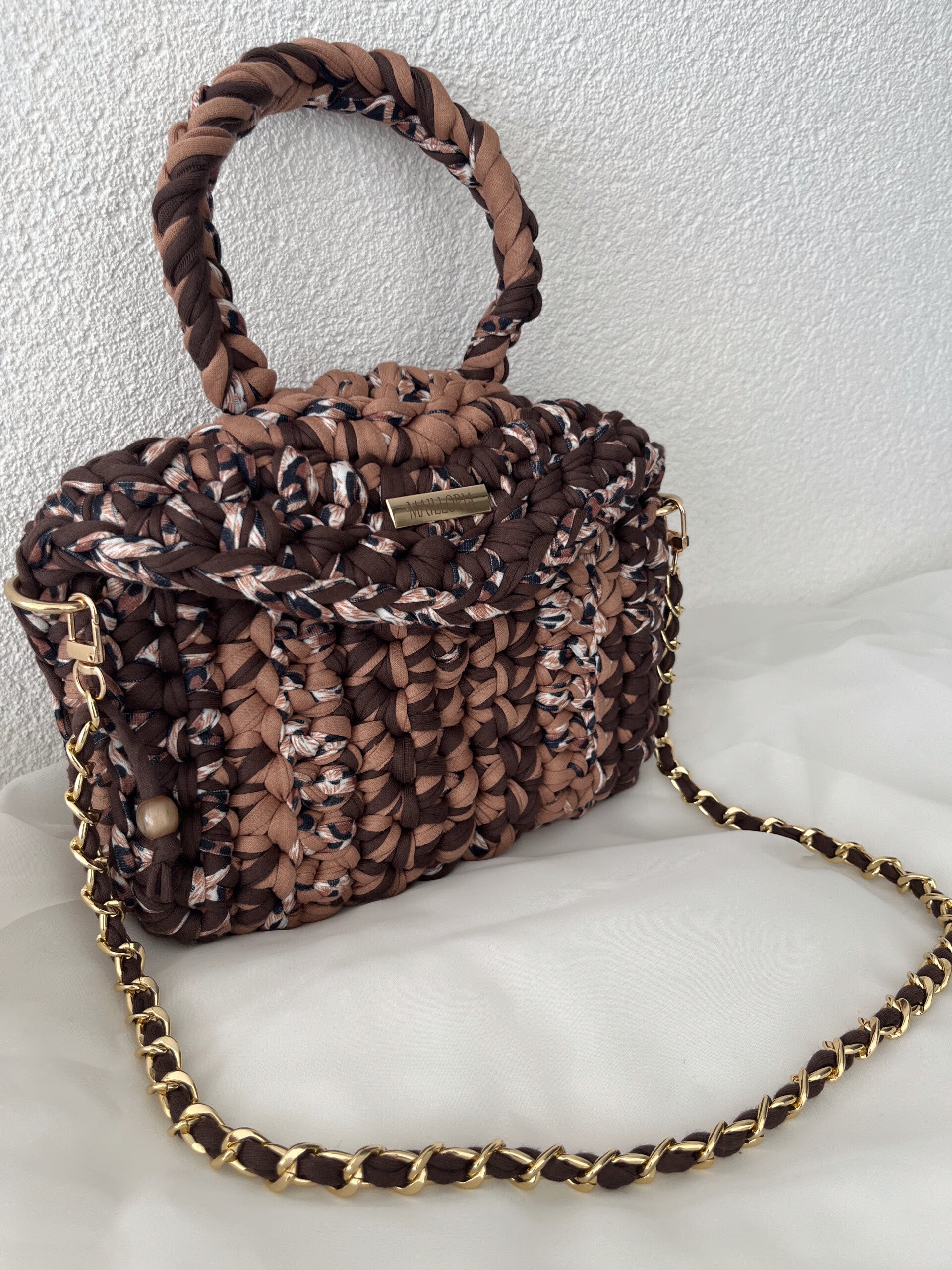 Crocheté à la main avec soin, il séduit par son brun profond relevé d’un motif léopard discret, pour une touche tendance et sophistiquée.